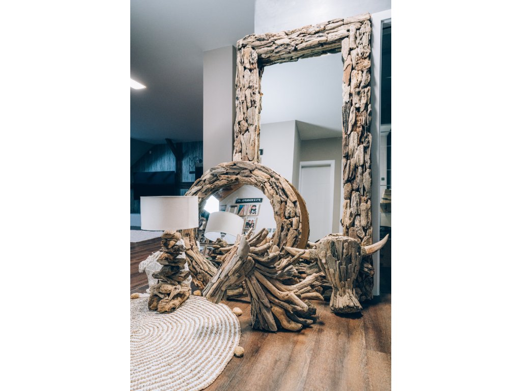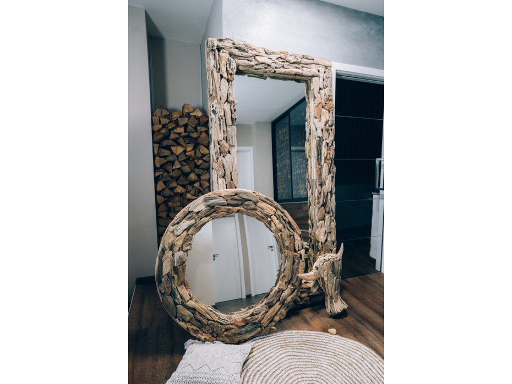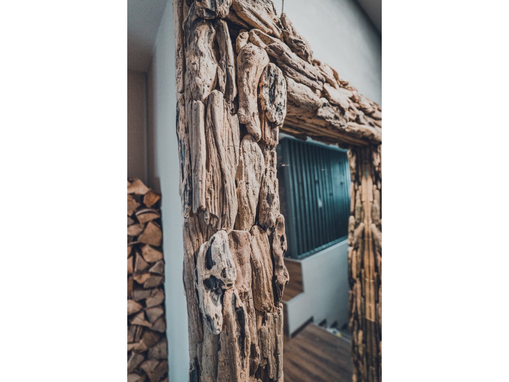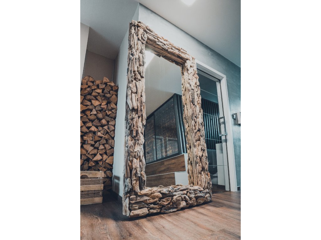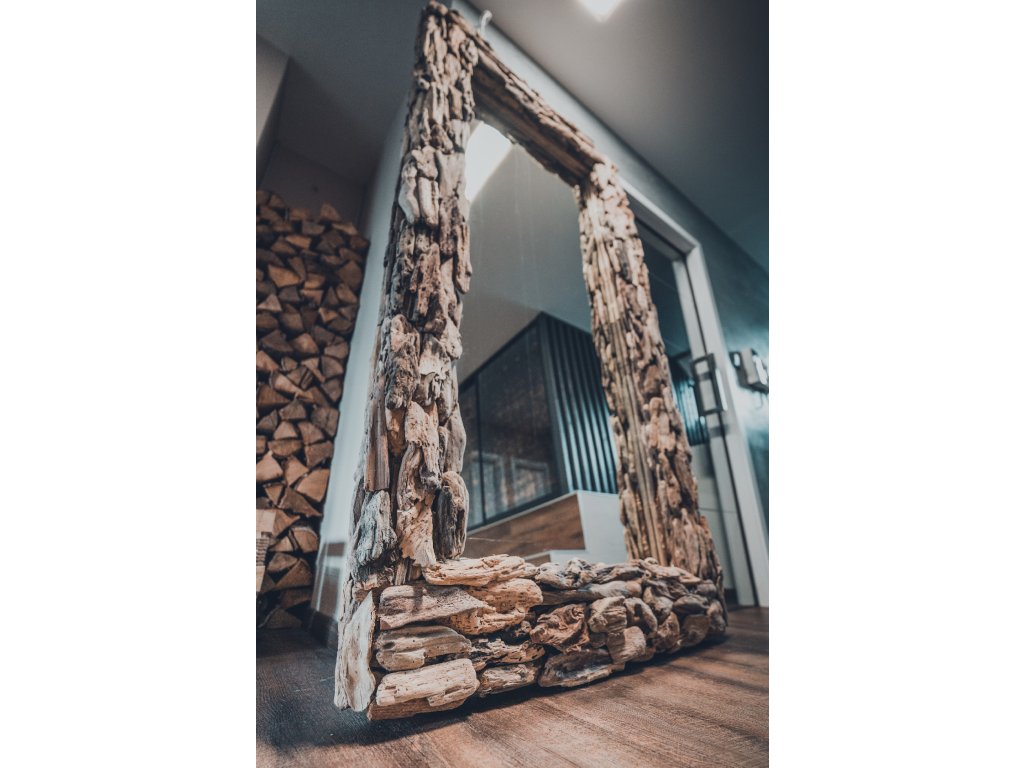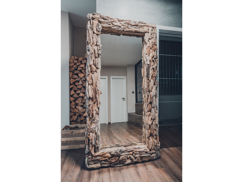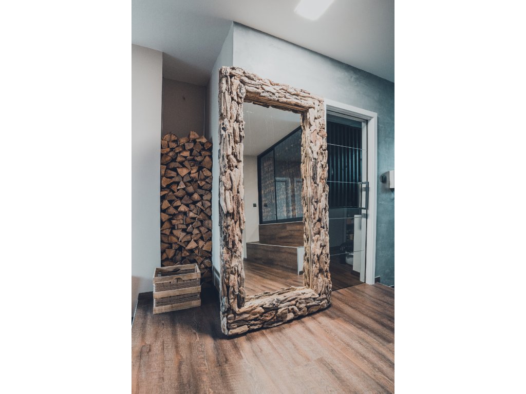 Velké zrcadlo v rámu z plaveného dřeva. Velikost zrcadla je včetně rámu 103 x 200 cm (šířka rámu 20 cm).
