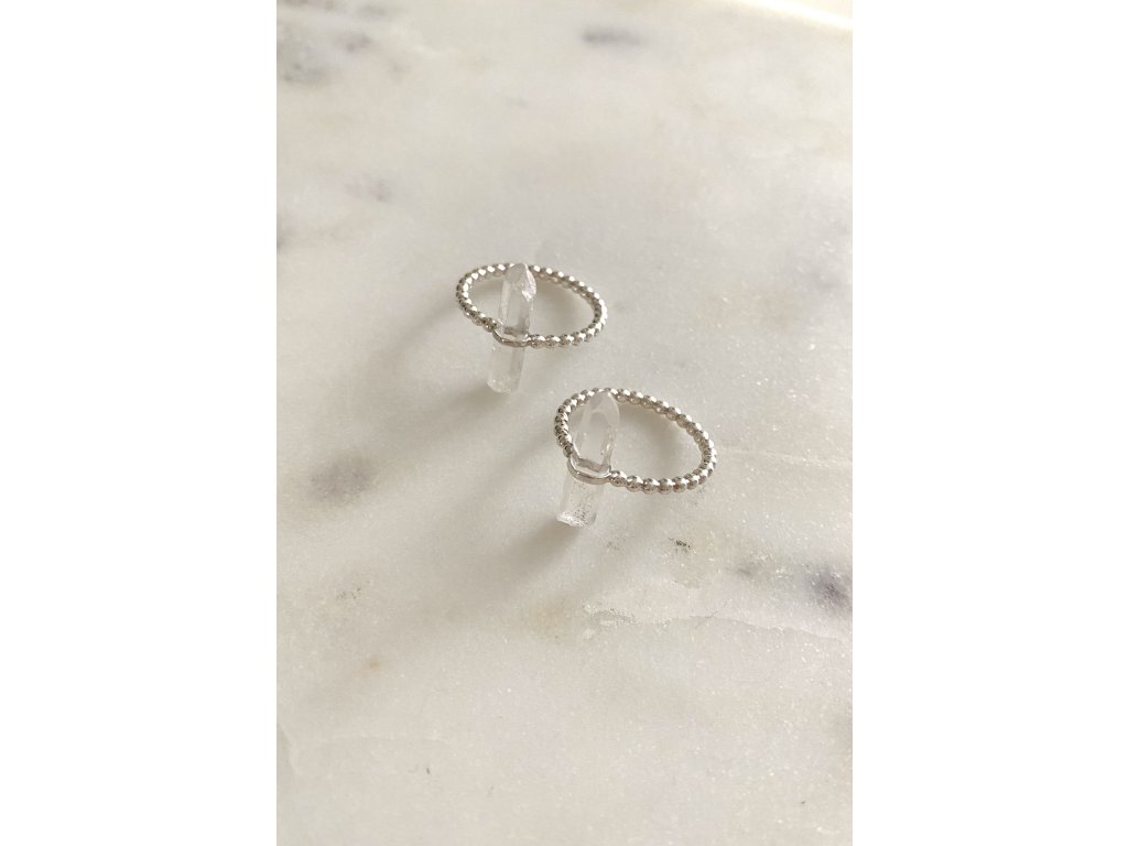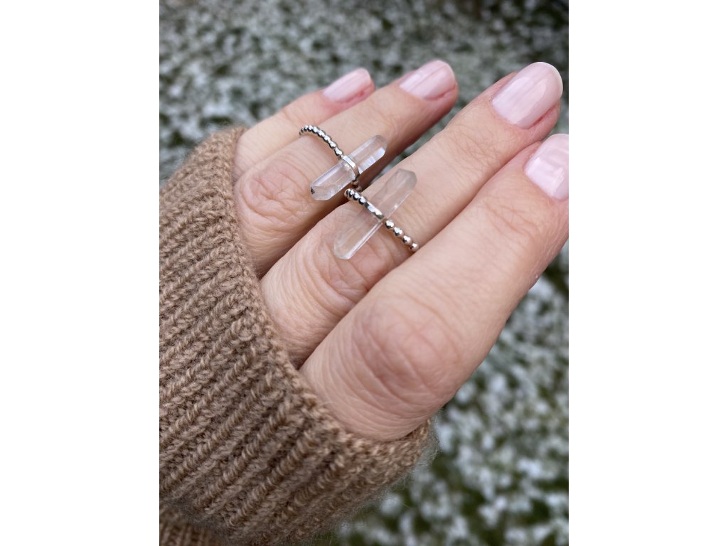 Kuličkový prstýnek s přírodním křišťálem nepravidelného tvaru.