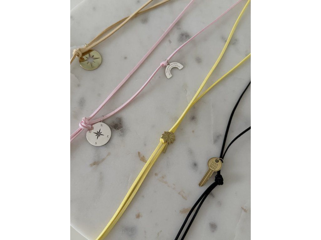 Kožená šňůrka délky 120cm s navěšeným přívěskem klíče (3cm), medailonu vizuálu kompas (22mm).