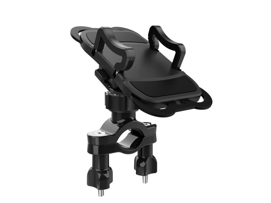 Držák na řídítka sloužící jako základna pro univerzální držák/klip na mobilní telefon